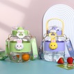 Sevimli Çizgi Film Baskılı Büyük Gövdeli Plastik Su Bardağı, Renkli Samanlı Bardak, Yaz İçin Pratik Spor Matarası, Çocuklar İçin Eğlenceli Desenli Kova Bardak, Dayanıklı Ve Hafif Beyaz