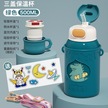 Sevimli Desenli Çocuk Termos Bardağı, Silikondan Yapılmış Güvenli Kapak, Pipetli Ve Sızdırmaz Su Matarası, Renkli Ve Şık Tasarım, Çocuklar İçin Pratik İçecek Kabı Yeşil