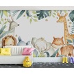 Sevimli Hayvanlar Tropikal Yapraklar Çocuk Odası Duvar Kağıdı