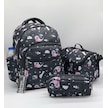 Sevimli Karakter Desenli Beslenmeli İlkokul Çanta Seti Siyah