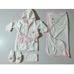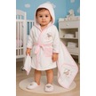 Sevimli Kuzu Nakışlı Bornoz Seti %100 Pamuktan. 4 Parça 0-3 Yaş Beyaz - Pembe