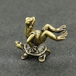 Sevimli Mini Pirinç Kurbağa Kaplumbağa Üzerinde Oturuyor Vintage Hayvan Heykeli Metal Figür Ofis Masası Dekoru Süs Oyuncak Hediye 3.5x4cm 3 Adet