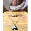 Sevimli Panda Mineli Gold Altın Renk Çelik Kız Çocuk Küpe Kolye