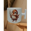 Sevimli Serçe Çift Taraf Baskılı T Kupa Bardak Beyaz T
