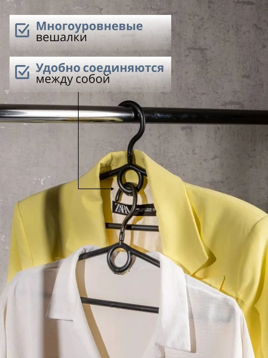 Sfrmarket Döner Kancalı Giysi Askıları Seti, 10 Adet 200142382 Siyah