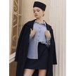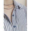 Shabrand Uzun Keten Çizgili Oversize Gömlek 450933791 Mavi