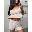 Sheko Kadın Pijama Takımı Evde Giyilebilecek Şortlu Ve Atletli. 401966373 Bej