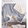 Sherpa Battaniye Çift Kişilik Çizgili Yumuşak Peluş Wellsoft Yatak Örtüsü Gri