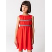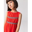 Sheshe Büzgülü Kırmızı Kolsuz Kız Çocuk Elbise Renkli