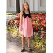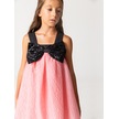 Sheshe Payet Fiyonk Detaylı Pembe Jakar Kız Çocuk Elbise Renkli