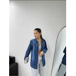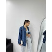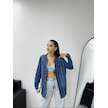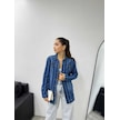 Shevega Kadın Çizgili Mavi Işlemli Boyfriend Kot Ceket Mavi