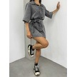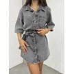 Shevega Kadın Füme Kuşakli Tek Cep Kısa Kot Elbise Füme