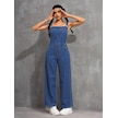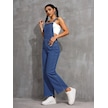 Shevega Kadın Mavi Kanguru Cep Bol Paça Kot Bahçevan Tulum Mavi