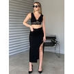 Shevega Kadın Siyah Uzun Ön Parçali Asimetrik Kot Etek Siyah