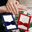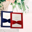 Shineyee 10 Adet Kırmızı Bow Kumaşlı Davetiye Seti - Zarf + Boş İç Kart + Kılıf + Askı, Düğün & Parti İçin Elegan Tasarım