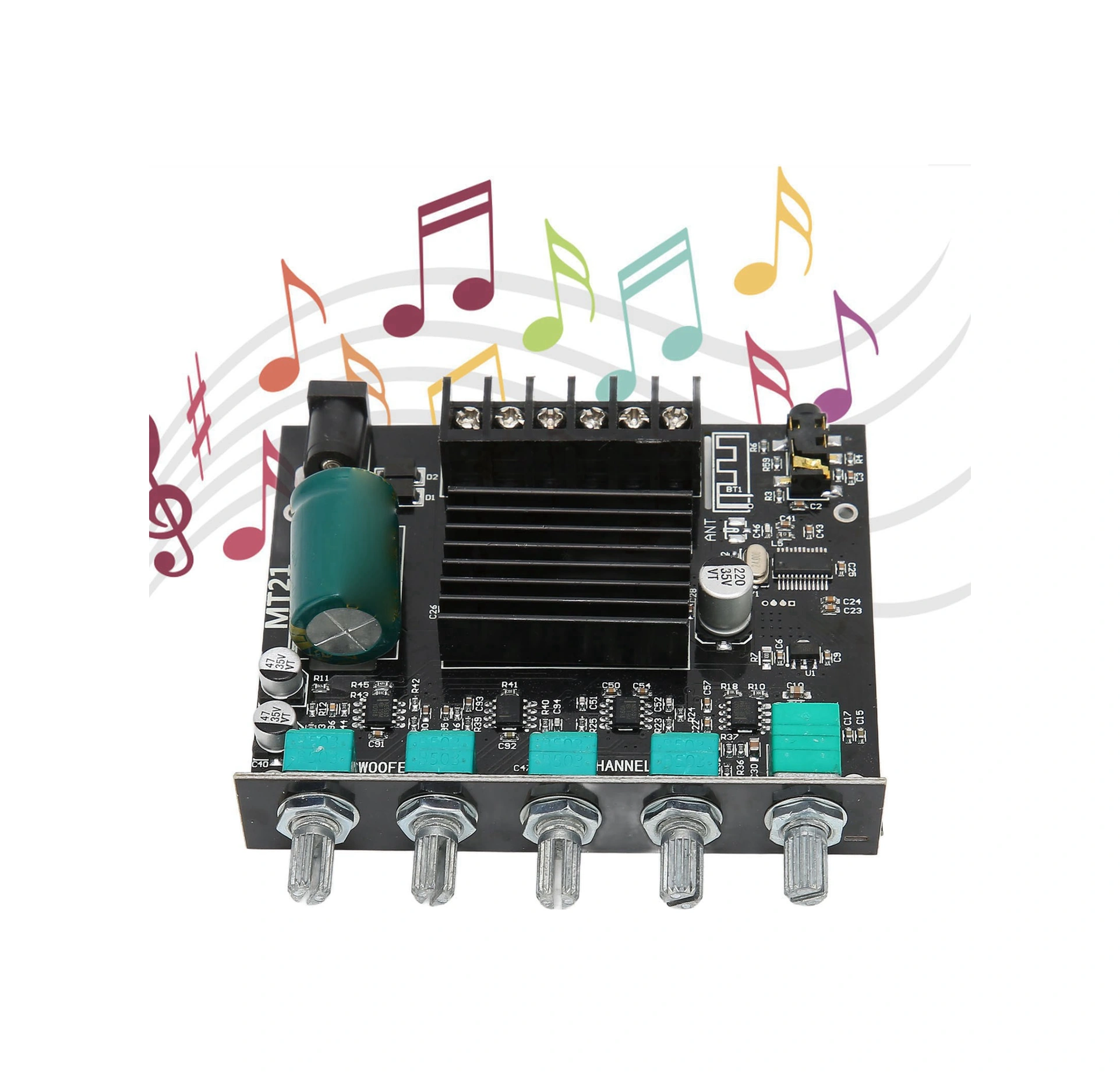 Shineyee 2.1 Kanal Bt 5.0 Güçlü Ses Amfi Kartı - 50w+50w+100w, Aux Girişi, Alçak Tiz Ayarı, Aşırı Akım Korumalı, 4-8ω Hoparlör Uyumlu
