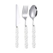 Shineyee 304 Paslanmaz Çelik Gümüş Perl Seramik Kollu Bıçak Çatal Kaşık Seti - Steak Ve Tatlılar İçin Lüks Tabakware Diğer