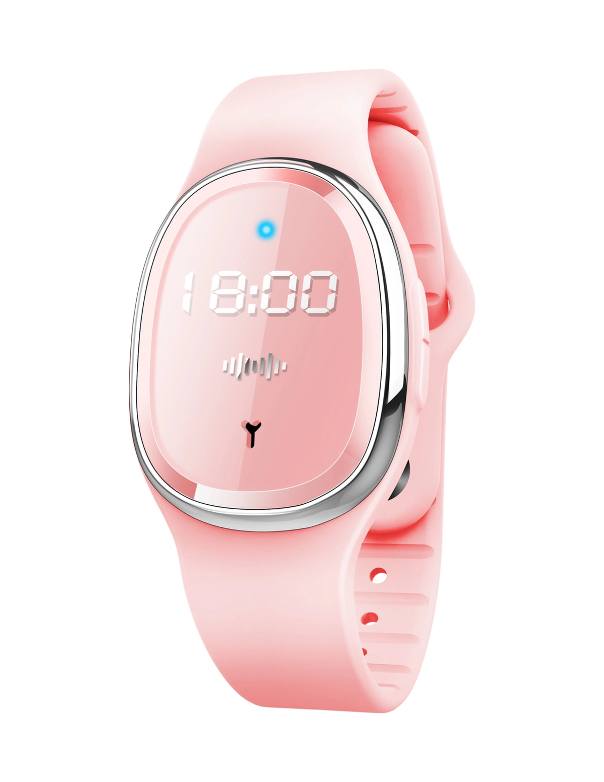 Shineyee M19 Ultrasonik Kovucu Bileklik - Bebek, Hamile Ve Yetişkinler İçin Dış Mekan Uyumlu - Saat Fonksiyonlu - Pembe