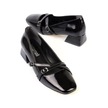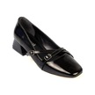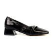 Shoetek Elvinya Kadın Stiletto Kalın Topuklu Çapraz Bantlı Tokalı Küt Burunlu Ayakkabı Siyah Rugan Siyah Rugan