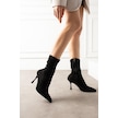 Shoetek Lastve Kadın Bot İnce Topuklu Fermuarlı Streç Siyah Süet Siyah Suet