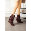Shoetek Livinya Kadın Kovboy Bot Körüklü Bordo Mat Deri Bordo