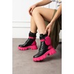 Shoetek Lorbi Kadın Bot Çantalı Postal Fuşya Tabanlı Siyah Deri Pembe
