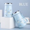 Shun Sevimli Papatya Desenli Paslanmaz Çelik Termos Bardak Dzcp-1 - Taşınabilir Mini Su Şişesi Mavi Mavi