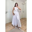 Sifir Kol Beli Oturtmalı Kolsuz Uzun Elbise - Beyaz Beyaz