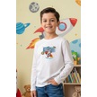Sıfır Yaka Astranot Baskılı Erkek Çocuk Sweatshirt BEYAZ