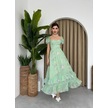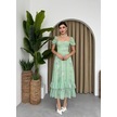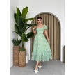 Tua Moda Kadın Şifon Kumaş Astalı Kloş Kesim Kruvaze Yaka Midi Boy Elbise Zümrüt Yeşili