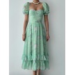 Yaz Aşk Desen Nokta Baskı Elbise Kadın Rahat A-line Kısa Kollu Kare Yaka Ruffles Orta Uzun Şifon Kırmızı Siyah Mavi Yeşil S-xl Kırmızı