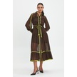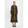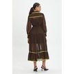 Şifon Ve Bağcıklı Midi Boy Elbise - Kontrast Şerit Detaylı - Günlük Ve Özel Günlük Şıklık Kahve