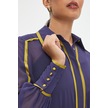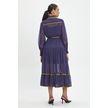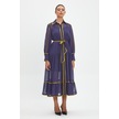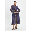 Şifon Ve Bağcıklı Midi Boy Elbise - Kontrast Şerit Detaylı - Günlük Ve Özel Günlük Şıklık Mor