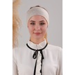 Sonbahar Esintisi Desenli Çapraz Ve Bant Detaylı Astarlı Hazır Türban Tesettür Havuz Bonesi Siyah-bej