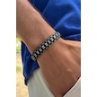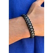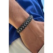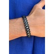 Şık Damalı Desen El İşçiliği İle Üretilmiş Hakiki Deri Erkek Bileklik Siyah - Beyaz