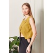 Şık Farklı Tarz Asi Keten Bluz - Modern Ve Cesur Tasarım HARDAL
