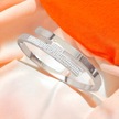 Şık Zirkon Taşlı Çelik Kelepçe Bileklik - Kararmaz Gümüş Kaplama Gümüş
