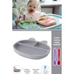 Silicolife 3 Gözlü Silikon Mama Tabağı, Vakum Tabanlı Bebek Porsiyon Tabak - 2 Mama Kaşığı Hediyeli Gri