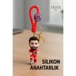 Silikon Futbolcu Figür Anahtarlık Çanta Ve Araba Anahtarlığı Sevimli Sporcu Anahtarlık Beyaz - Kırmızı