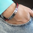 Silikon Kordonlu Silver Renk Çelik Plakalı Kırmızı İp Detaylı Kişiye Özel İsim Harf/yazılı Erkek Bileklik Çelik