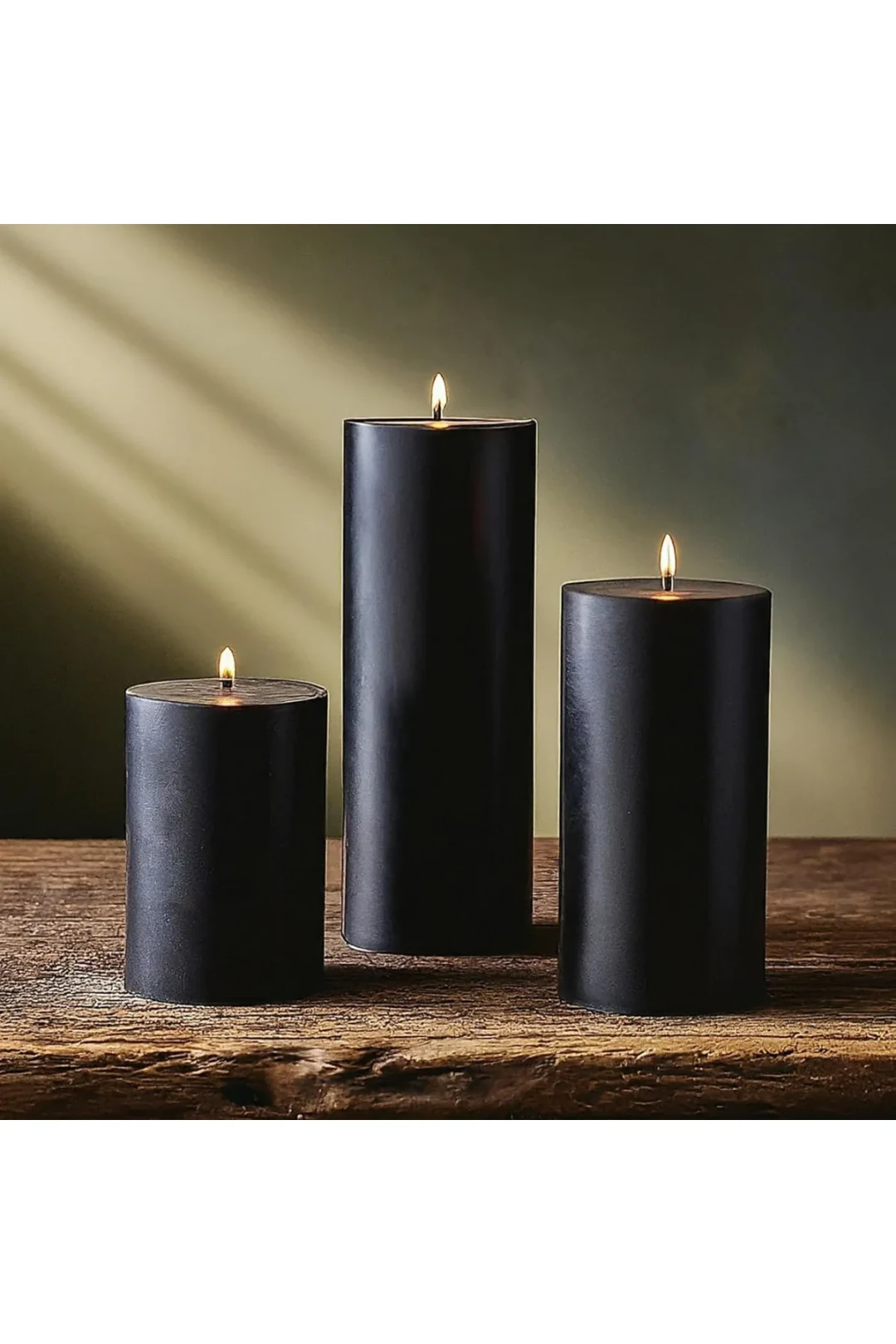 Silindir Mum 3'lü Kokulu Büyük Mum Dekoratif Mum Seti Siyah