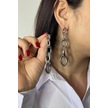 Silver İç İçe Geçmeli Elips Model Sallantılı Çelik Küpe Silver