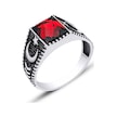 Silvera Telkari Gümüş Ay Yıldız Kırmızı Zirkon Taşlı Erkek Yüzük 925 Ayar St327 Kırmızı