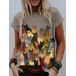 Simala Kadın Kısa Kollu Bisiklet Yaka Kedi Desenli Süprem Bluz SÜTLÜ KAHVE