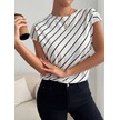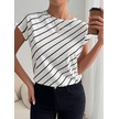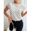 Simala Kadın Kısa Yarasa Kollu Bisiklet Yaka Çizgi Desenli Atlas Bluz Beyaz