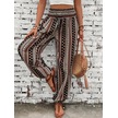 Simala Kadın Yüksek Bel Etnik Desenli Geniş Dökümlü Bürümcük Pantolon Çok Renkli