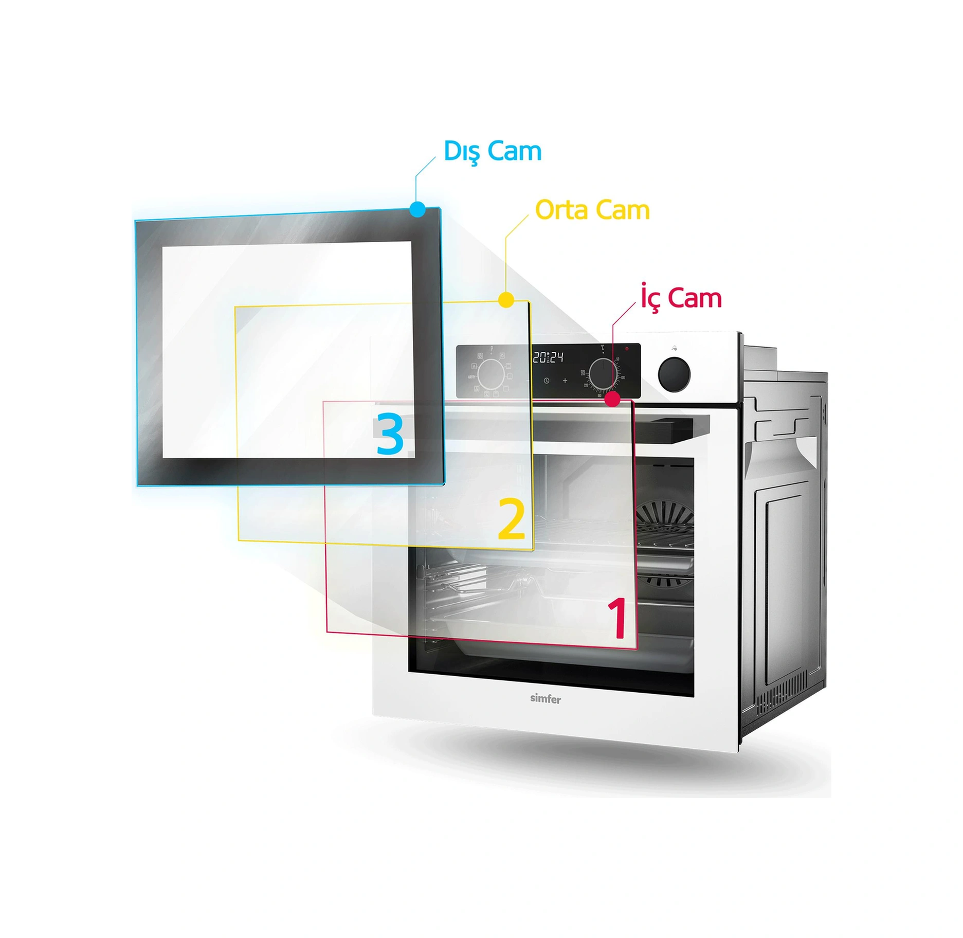 Simfer 8245 11 Fonksiyon Steam Master Ankastre Fırın Beyaz Cam Dijital