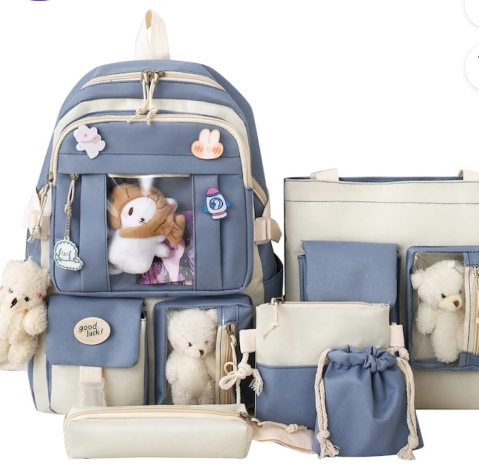 Sımıcg Öğrenci Büyük Kapasiteli Beşli Okul Çantası Seti Mavi