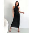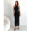 Kadın Yakalı İki Cepli Krep Elbise Siyah Sckwm23el02 Siyah