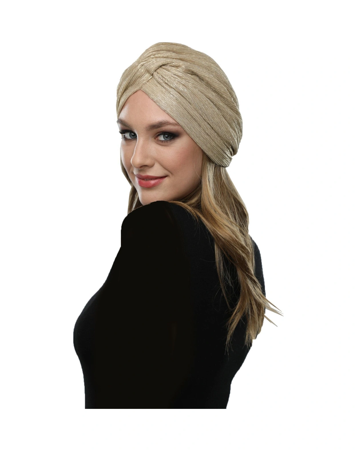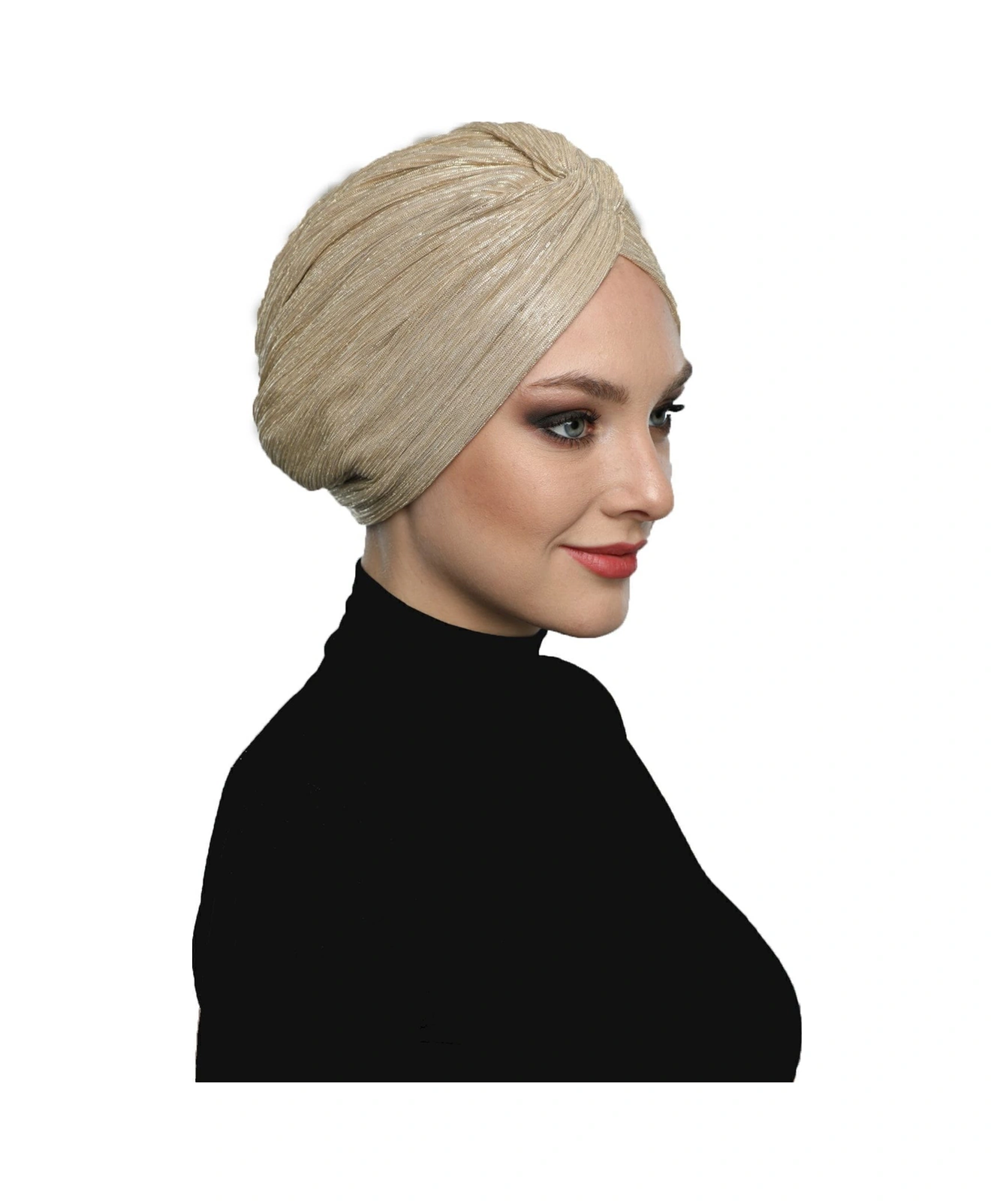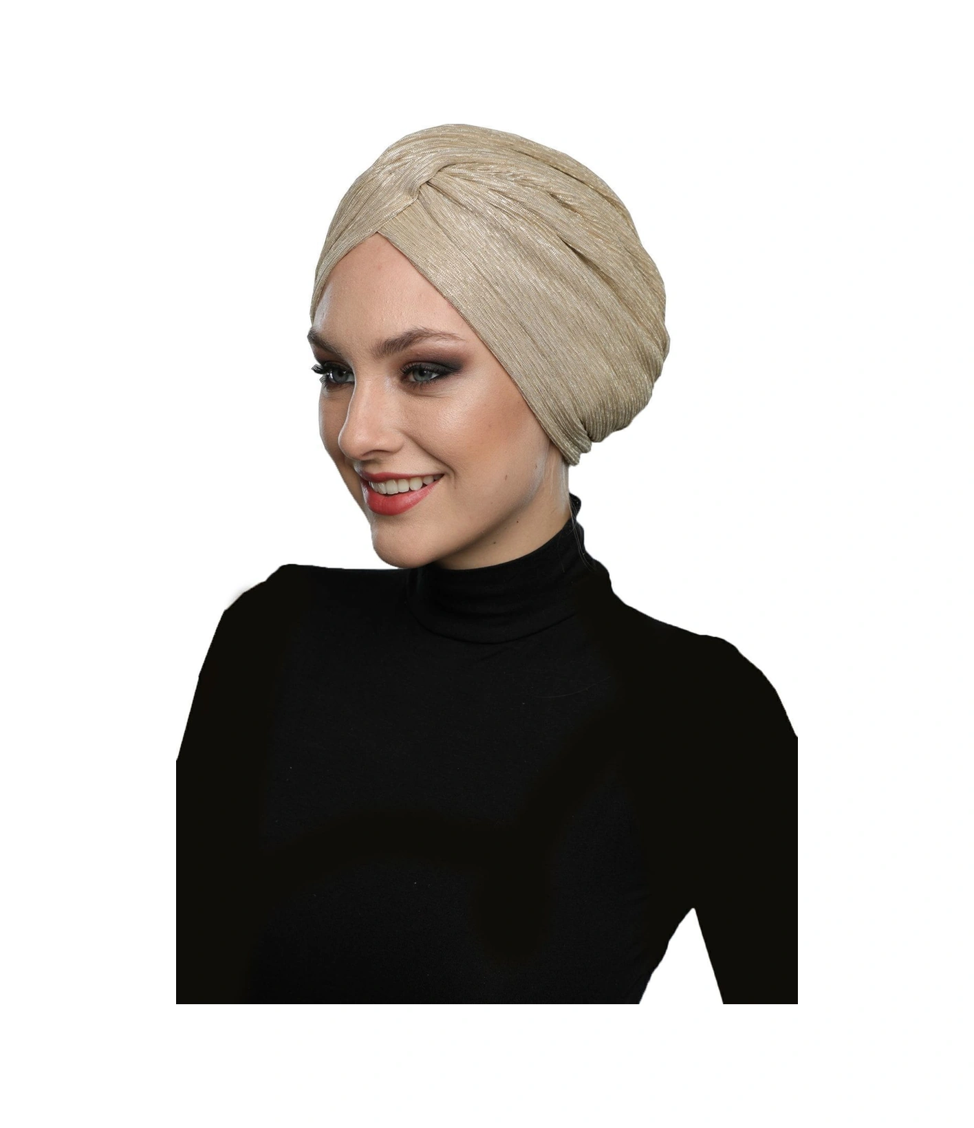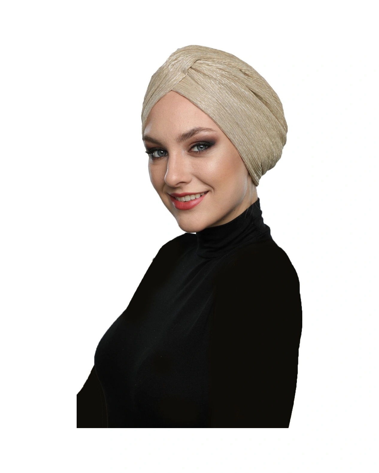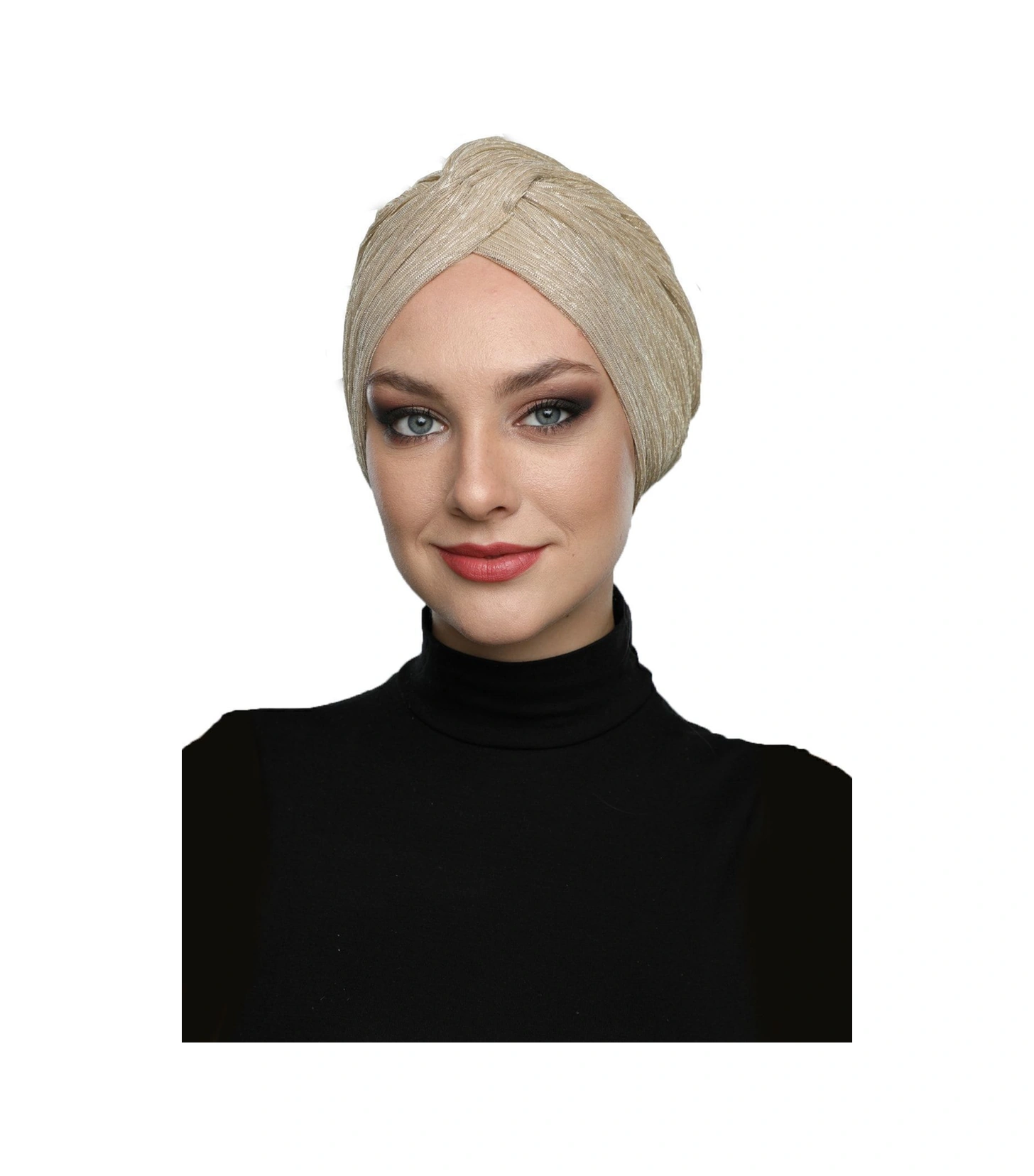 Simli Çapraz Astarlı Bej Hazır Türban Tesettür Bone Bej